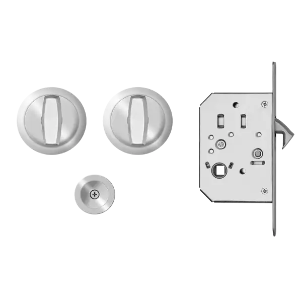 EPD PB in satin stainless steel, pocket door set round, 1 set, diameter 63 mm, thickness 2 mm, milling dimensions Ø 55 x 10 mm, door thickness to 42 mm from 44 mm