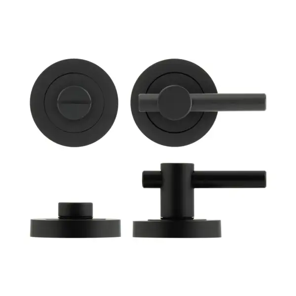 The Jedo Easy Thumb Turn & Lock in Black features a stylish plain bar detail, offering a secure grip and an industrial aesthetic. Made from aerospace-grade aluminium, it is designed to match the Jedo door handle range for a cohesive look.